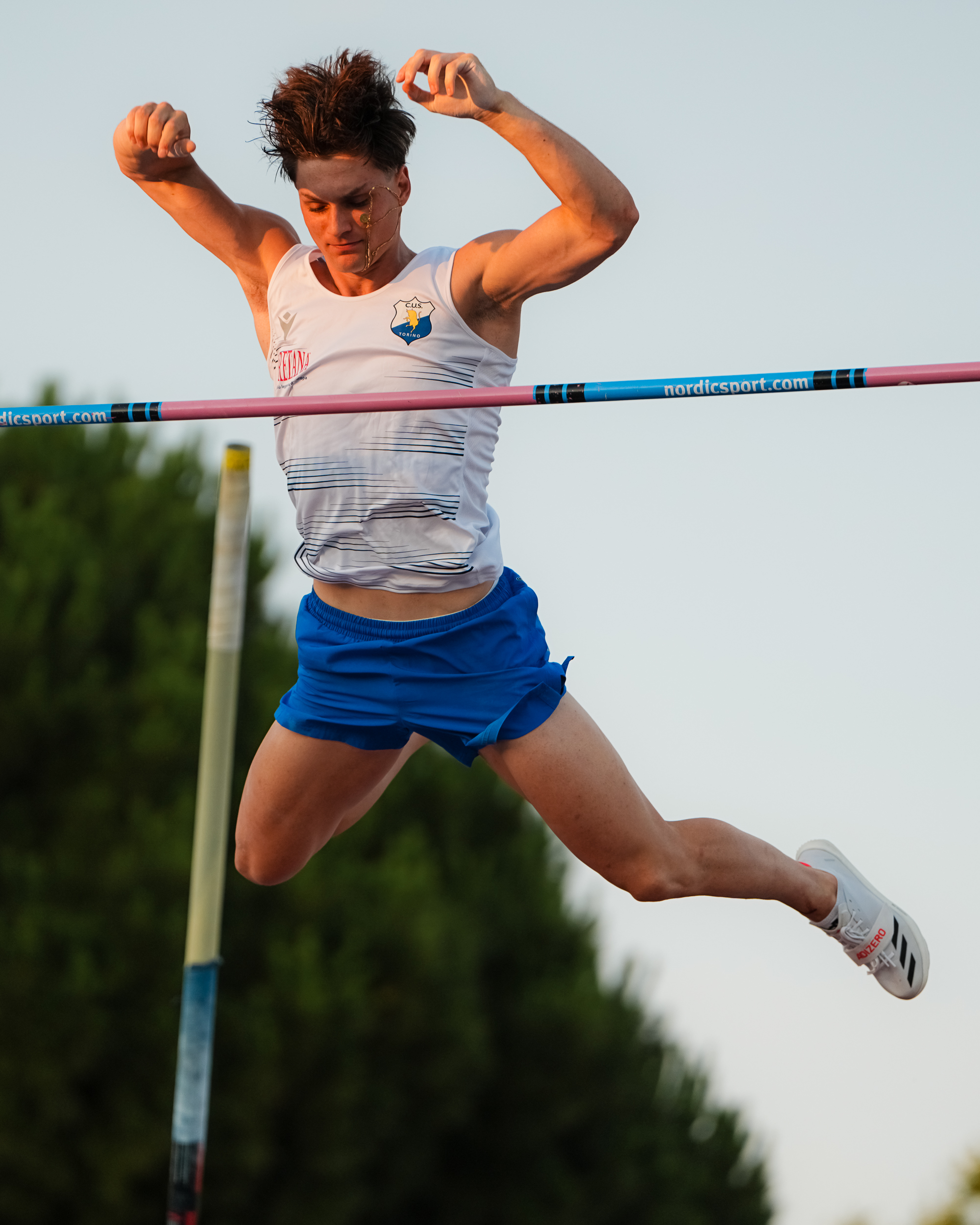 UOMINI. MEDAGLIE. Rispetta i favori del pronostico Leonardo Scalon (Battaglio CUS Torino) che nell’asta al titolo di categoria indoor aggiunge quello all’aperto. Al torinese è sufficiente superare la misura di 4,92 per conquistare il titolo, poi prova i 5,20 dove, falliti i primi due tentativi, rinuncia per evitare infortuni. La sua serie vede un errore a 4,50, due a 4,70 poi un nuovo errore a 4,78, misura che poi decide di passare per concentrarsi sulla successiva di 4,85 che supera al primo tentativo, poi 4,92 al secondo.